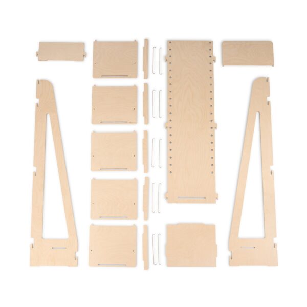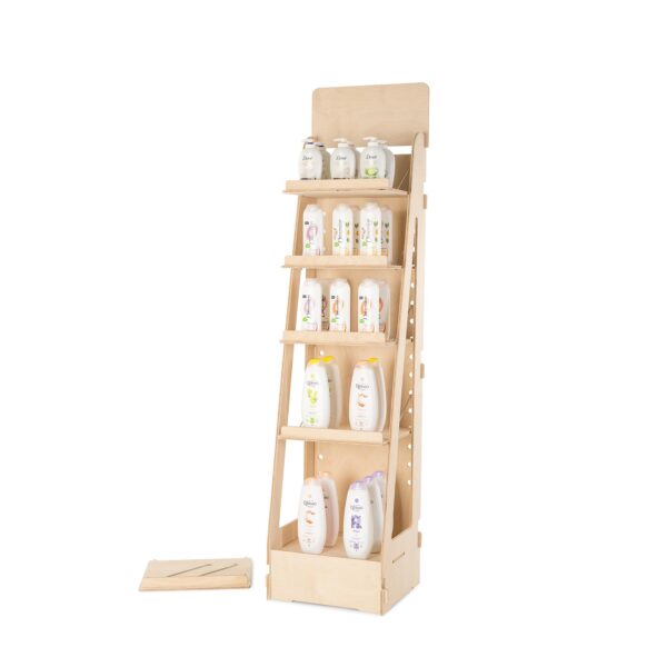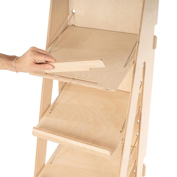 Sistema a incastro senza attrezzi, per un assemblaggio rapido e senza complicazioni. La sua confezione compatta come flat pack (159 x 47 x 7 cm) facilita il trasporto e riduce l’ingombro. Con le istruzioni chiare ed esplicative che troverai all’inerno del prodotto, avrai l’espositore pronto all’uso in pochi minuti.