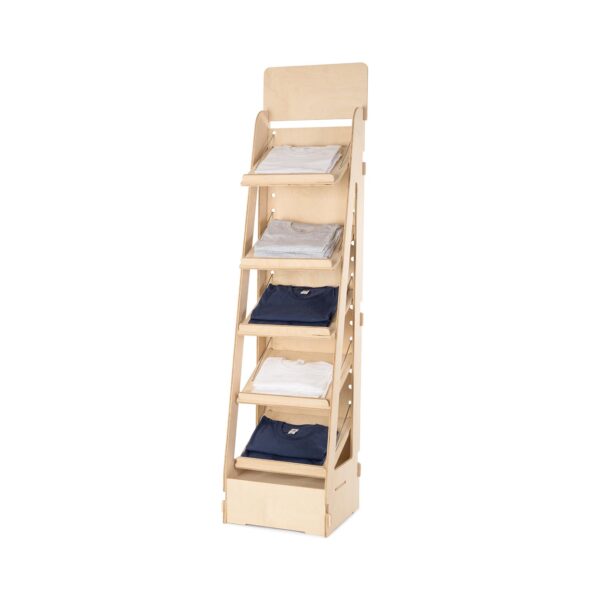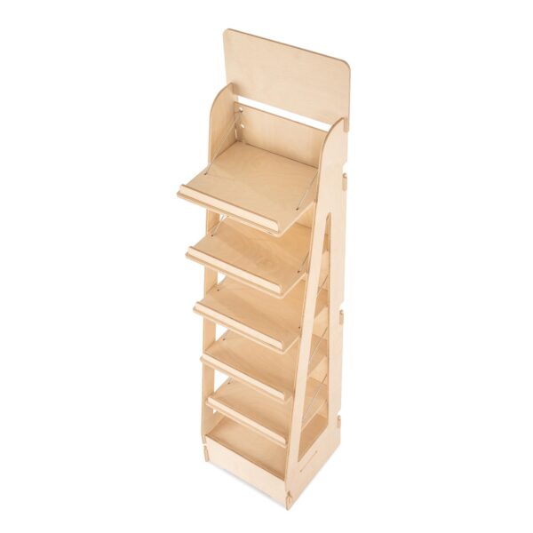 L’espositore da terra Adapti 400 è la scelta ideale per presentare in modo ordinato, sostenibile e professionale articoli di cartoleria, prodotti artigianali e confezioni alimentari leggere. Grazie ai 5 ripiani mobili e inclinabili, ciascuno con fermaprodotti/portaprezzi integrati, permette una disposizione flessibile dei prodotti, adattandosi perfettamente alle esigenze di ogni punto Il montaggio rapido a incastro e la struttura leggera ma resistente lo rendono pratico da trasportare e posizionare, anche in occasioni temporanee come fiere o mercatini.