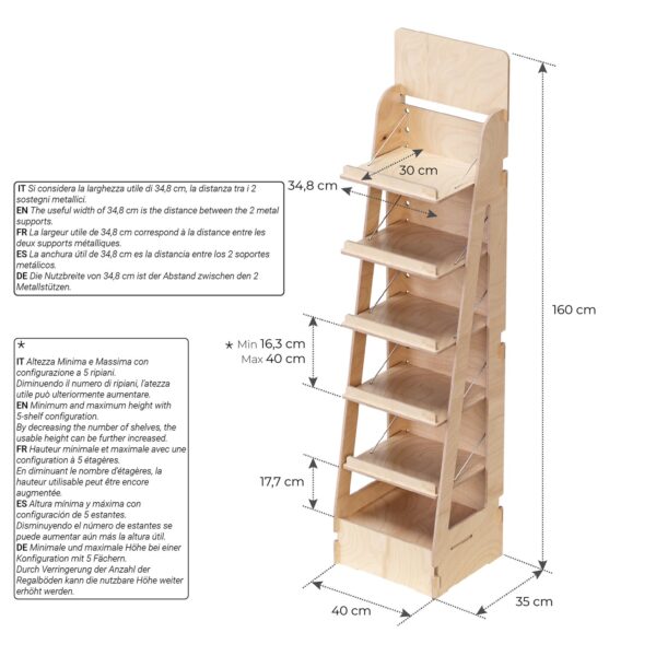 5 Ripiani Regolabili e Inclinabili| Espositore da Terra