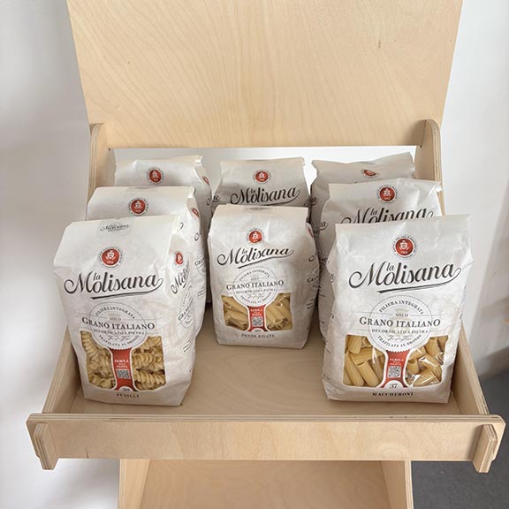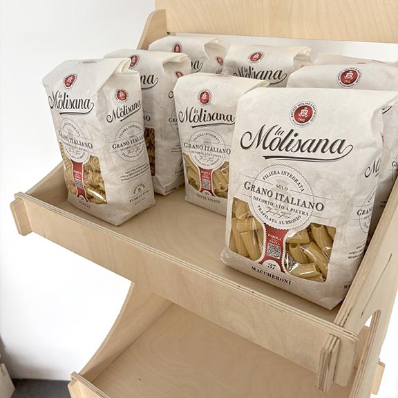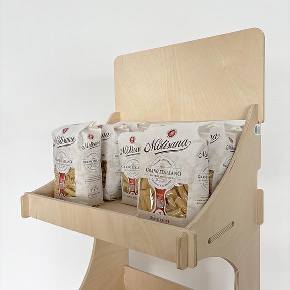 Ideale per esporre lattine, barattoli, prodotti in scatola, bottiglie, libri, vasi, piante e confezioni artigianali, si adatta perfettamente a punti vendita, corner fieristici, negozi biologici, ristoranti e mercatini.