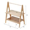 Il piano superiore, più ampio e robusto, può ospitare vasi alti fino a 60–70 cm mentre il ripiano inferiore è ideale per piccoli accessori, piante in vaso, kit decorativi o materiali complementari. ideale e molto pratico anche per i negozi di abbigliamento. La struttura con montaggio a incastro unisce estetica naturale, praticità e sostenibilità.