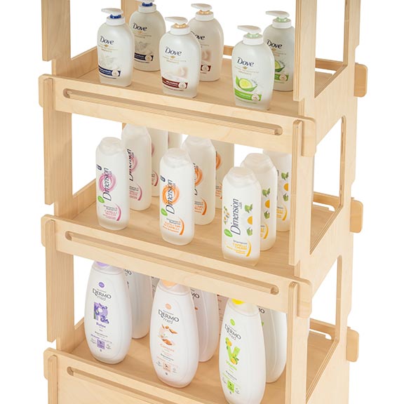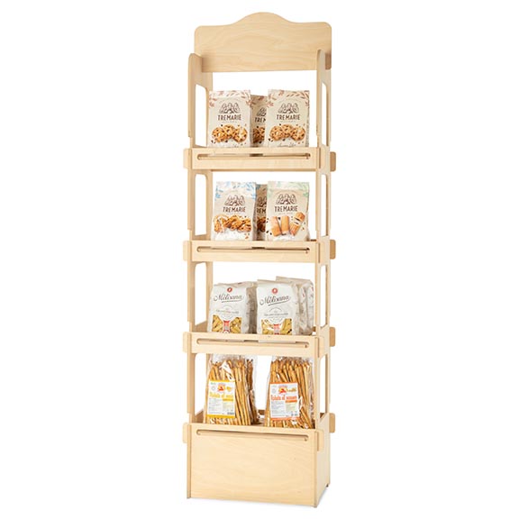 Struttura solida, ideale per massimizzare l’esposizione anche in spazi limitati. Ideale per articoli artigianali, prodotti cosmetici, lattine, conserve, bottiglie, vasi, barattoli, piante, libri e molto altro.