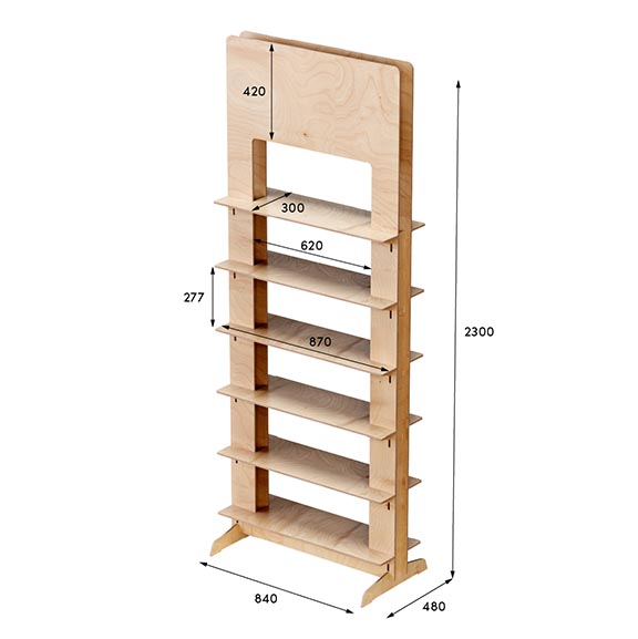 Dotato di più ripiani rispetto agli altri modelli della linea, permette di disporre ordinatamente un ampio numero di articoli, mantenendo al contempo un’estetica pulita e ordinata.