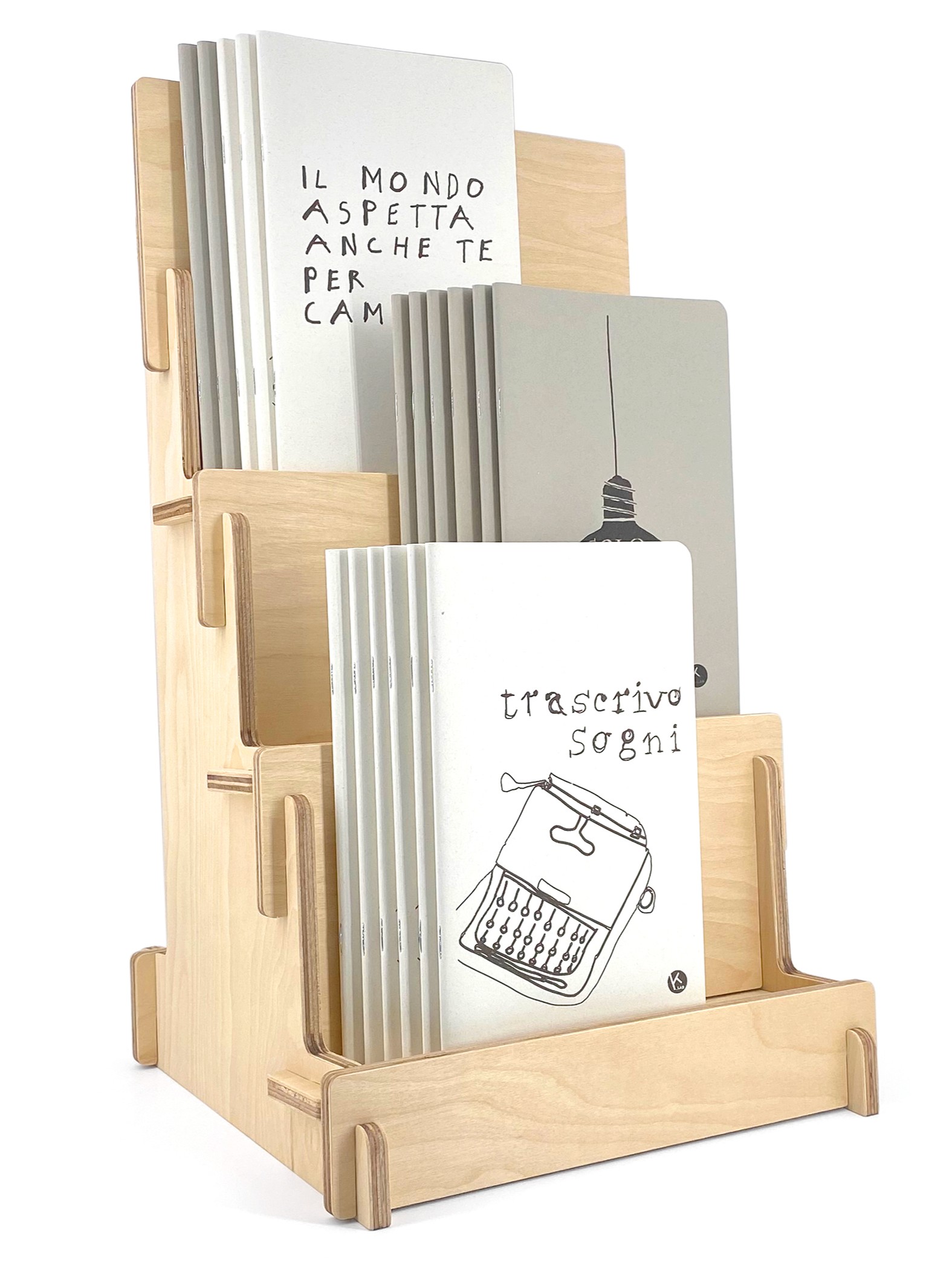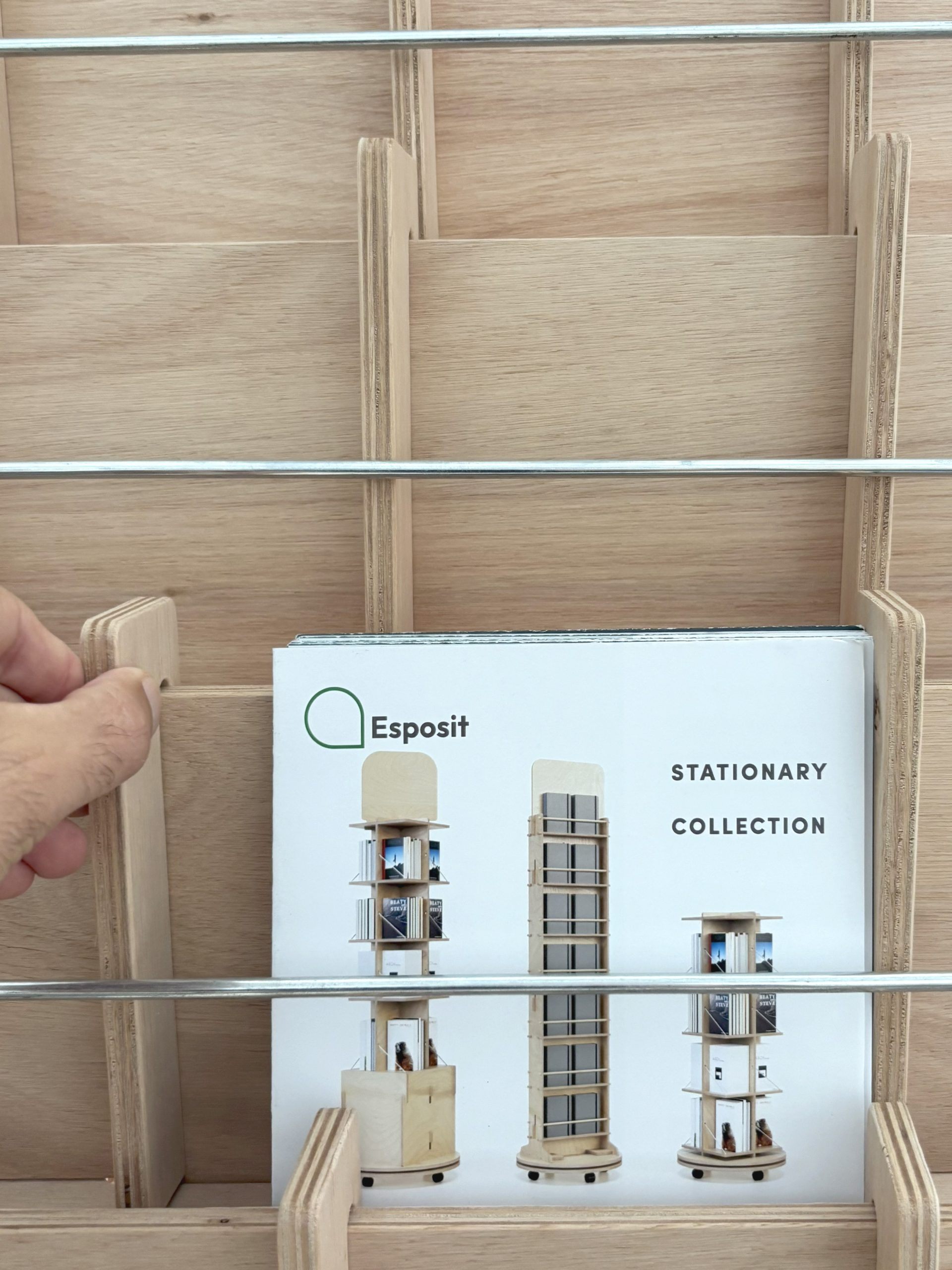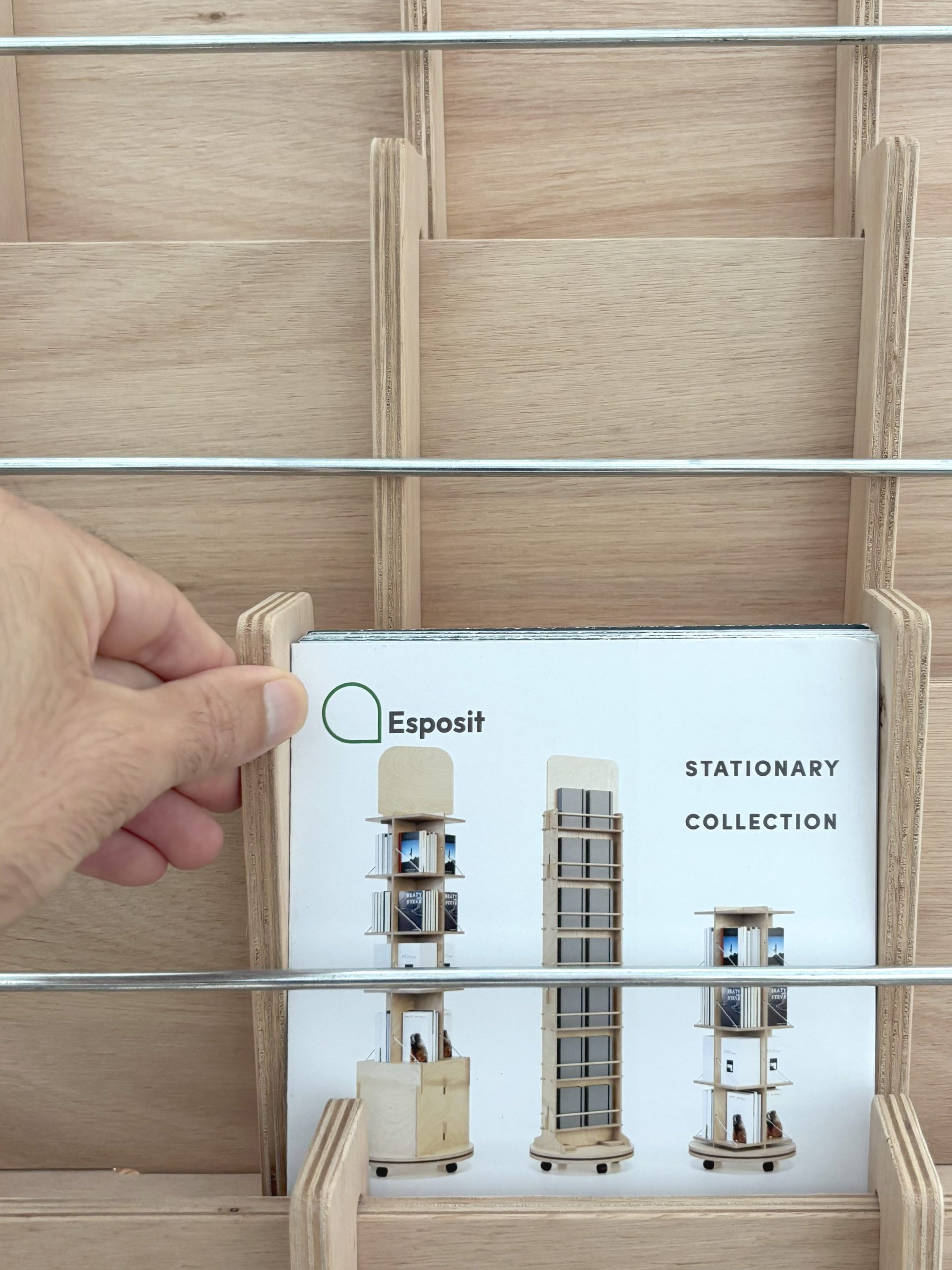 Esposit offers adjustable and interlocking wooden solutions, ideal for stationery stores, bookshops and shops that want to communicate care, warmth and sustainability.