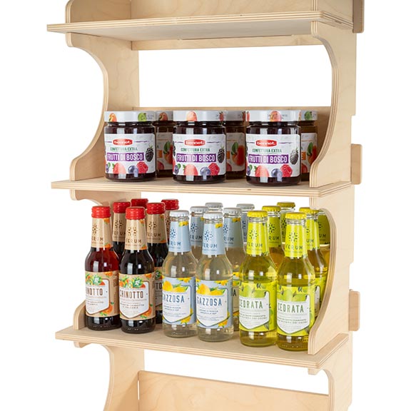 Parfait pour les magasins, les salons, les marchés ou les points de vente temporaires grâce à son assemblage rapide par emboîtement ne nécessitant aucun outil. Avec Horizon, chaque emballage devient protagoniste. Idéal pour les pots de confiture ou de miel, les mini-emballages alimentaires, les cosmétiques ou les articles artisanaux, même dans les espaces les plus réduits.