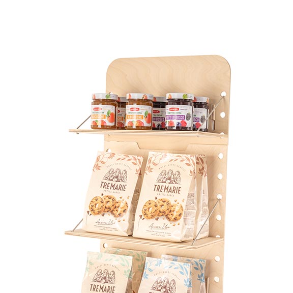 L’espositore da terra Arbor 400 è la soluzione ideale per presentare in modo ordinato, sostenibile e professionale una vasta gamma di prodotti: dagli alimentari confezionati agli articoli artigianali, dai cosmetici ai gadget e all’abbigliamento, fino ai prodotti regalo.