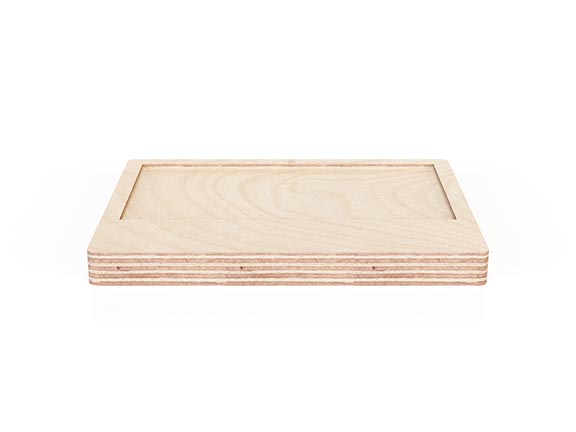 Superficie liscia e neutra pronta per stampa, incisione o adesivi per trasformare il vassoietto in un supporto brandizzato.