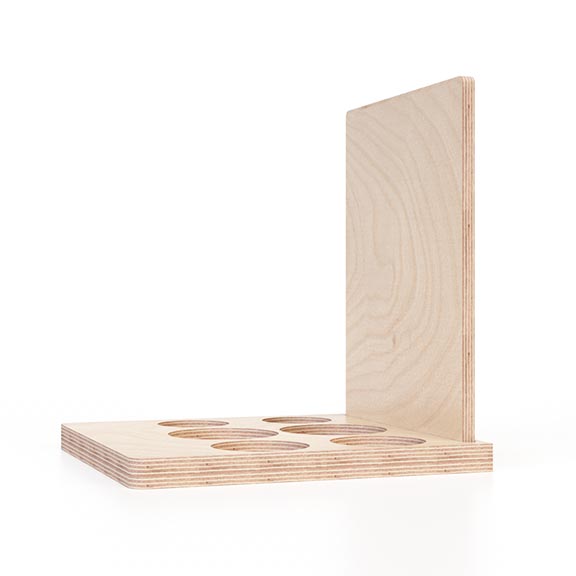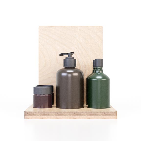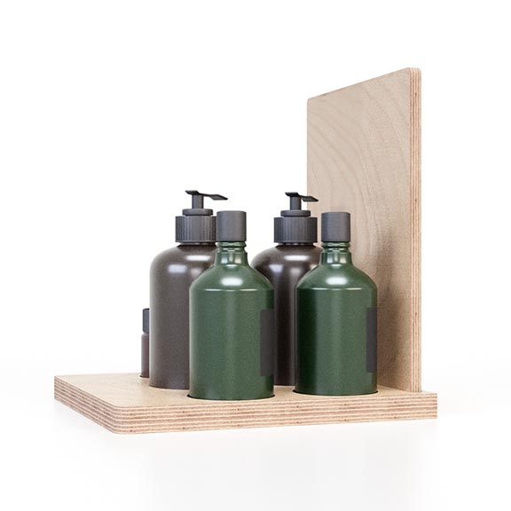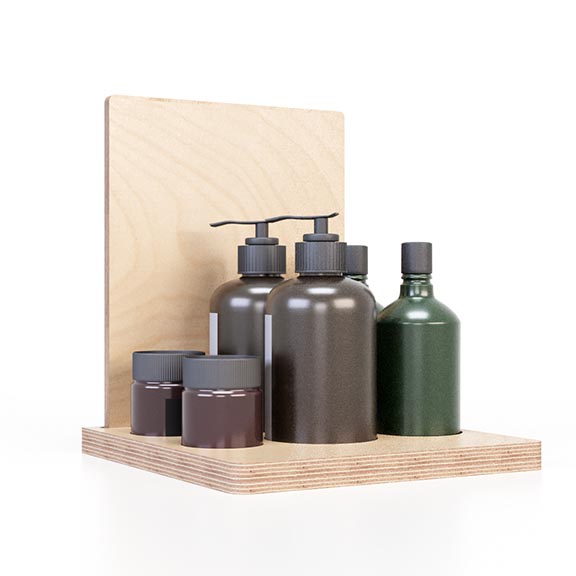 Le fresate precise garantiscono un inserimento stabile e ordinato di diverse tipologie di packaging, dai flaconi alle scatole, adattandosi perfettamente alla tua gamma di prodotti. Realizzato in legno certificato e sostenibile con un pratico sistema a incastro per un montaggio rapido, questo espositore è un investimento ecologico che riflette i valori del tuo brand.