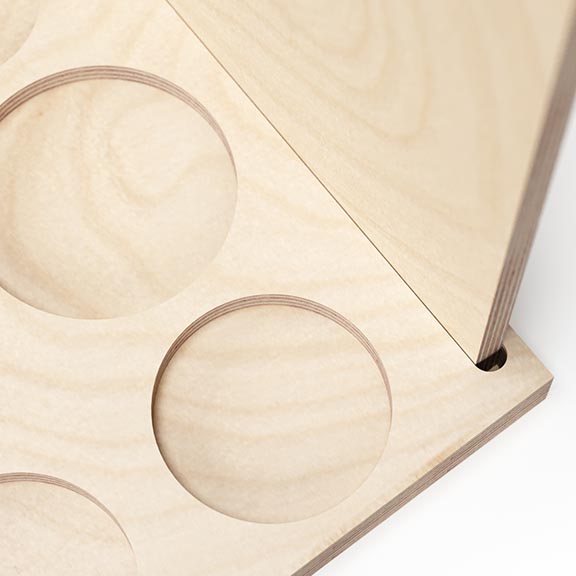 - Materiale:legno di eucalipto certificato FSC®, codice di licenza FSC-C213598 (spessore 9-18 mm)