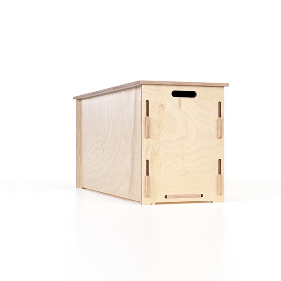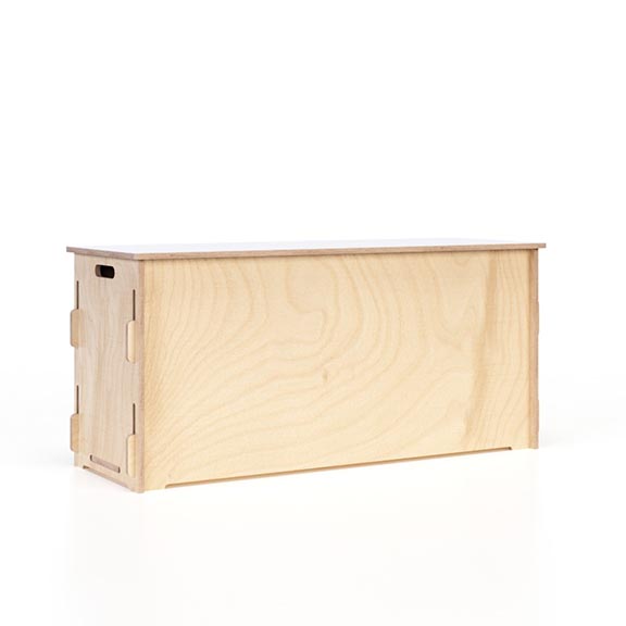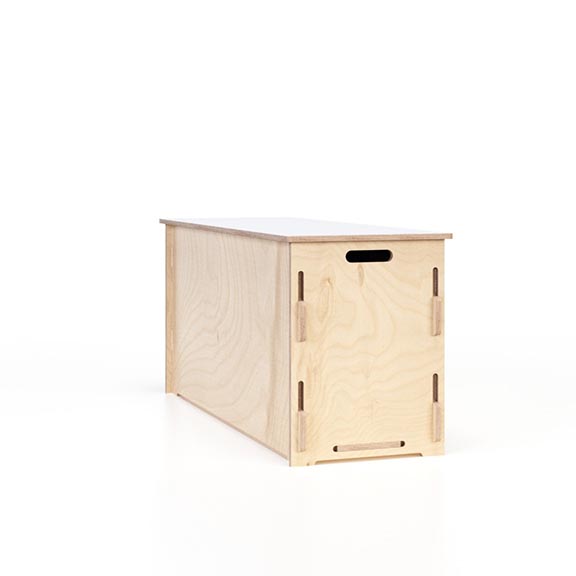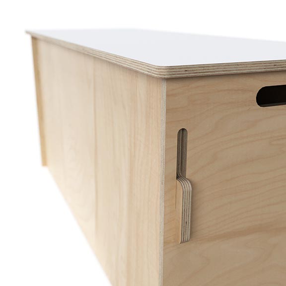Grazie al sistema a incastro, Dolly si monta rapidamente ed è estremamente versatile: può essere utilizzata come seduta funzionale o come piano d’appoggio per esporre prodotti, mentre il vano contenitore interno è ideale per gestire scorte, materiali o accessori. Per garantire una maggiore stabilità e sicurezza durante l’uso, sono state aggiunte due viti di bloccaggio che fissano il piano alla struttura.