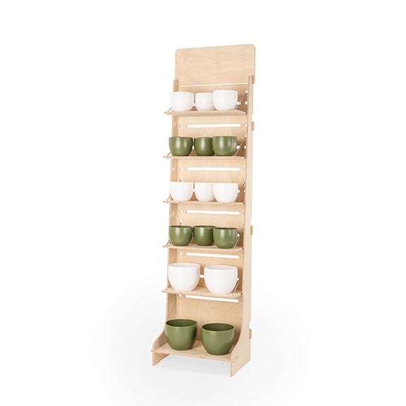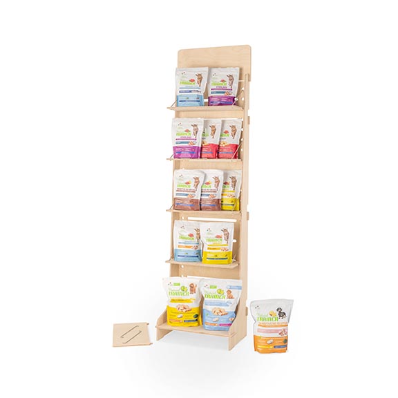 L’espositore da terra Flexi 400 è la soluzione più funzionale per esporre i tuoi prodotti con stile e professionalità in spazi più contenuti rispetto a Flexi 600. Grazie ai suoi 5 ripiani mobili e inclinabili e un piano espositivo alla base, offre una grande versatilità per mostrare confezioni di pasta, biscotti, marmellate, miele, sughi e bibite in bottiglia, adattandosi perfettamente a negozi, mercatini, corner promozionali e fiere.