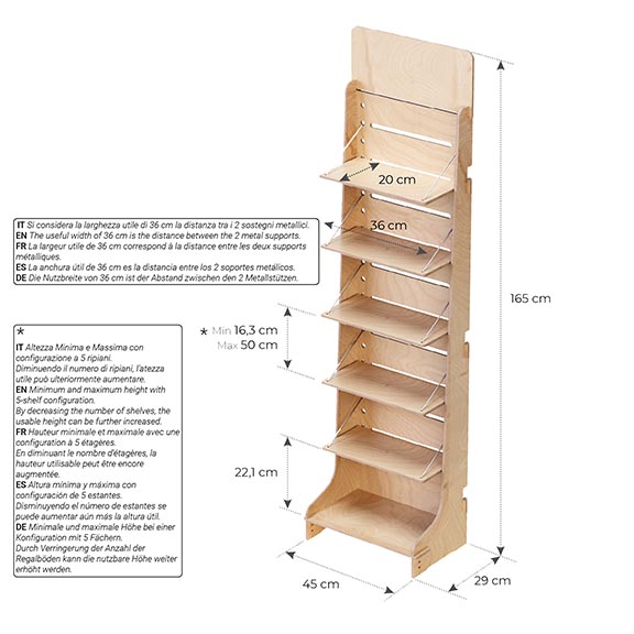 Espositore da Terra con 5 Ripiani Mobili & Inclinabili | Perfetto per Prodotti Alimentari e Barattoli, Pet food, bevande e moltissimi altri articoli.