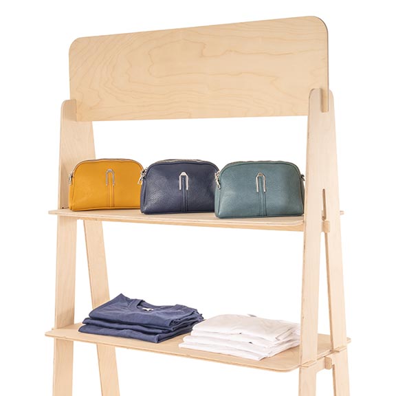 Ideale anche per prodotti di abbigliamento offre una doppia superficie espositiva per il massimo impatto in spazi contenuti.