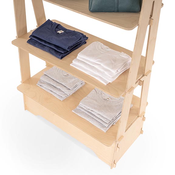 È l’espositore perfetto per presentare t-shirt, pantaloni, felpe, maglioni, scarpe e accessori moda in un layout ordinato e facilmente accessibile.
