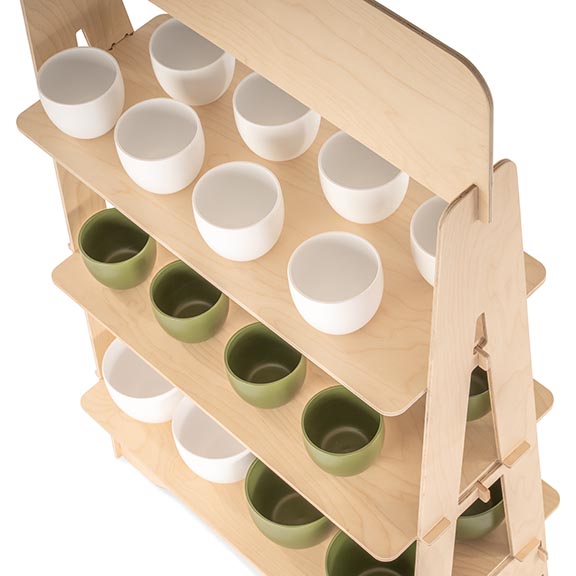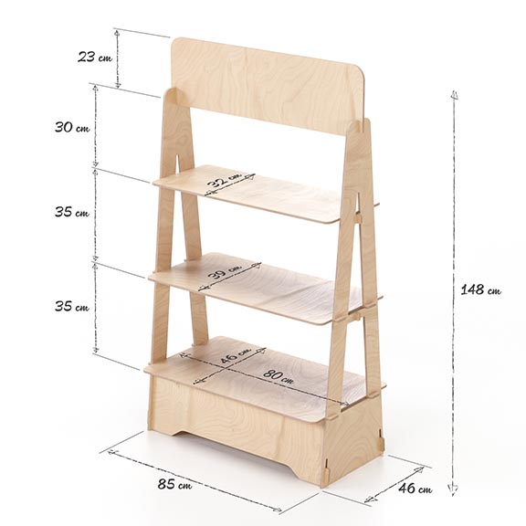 Il sistema a incastro permette un montaggio semplice e veloce, senza l’uso di attrezzi. Ideale anche per allestimenti temporanei grazie alla leggerezza e maneggevolezza della struttura.