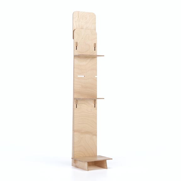 Sistema a incastro intuitivo che permette di assemblare l’espositore in pochi minuti senza necessità di strumenti.